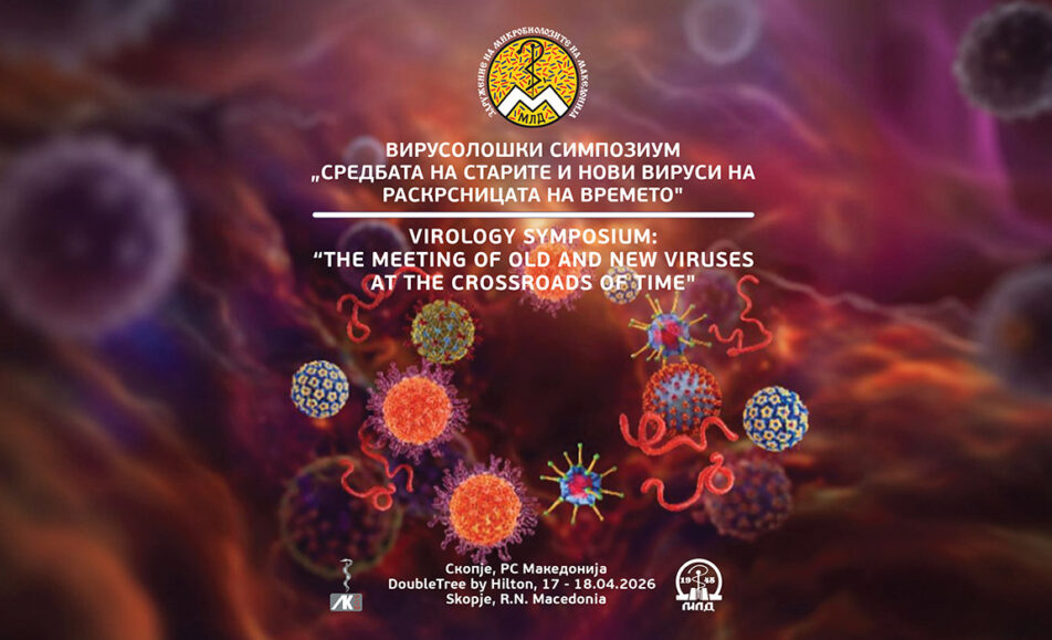 Во име на Здружението на микробиолозите на Македонија, имам чест и задоволство да Ве поканам на Вирусолошкиот симпозиум под наслов ”Средбата на старите и нови вируси на раскрсницата на времето”, кој ќе се одржи во периодот 17 – 18 април 2026 година во хотел Хилтон, Скопје.